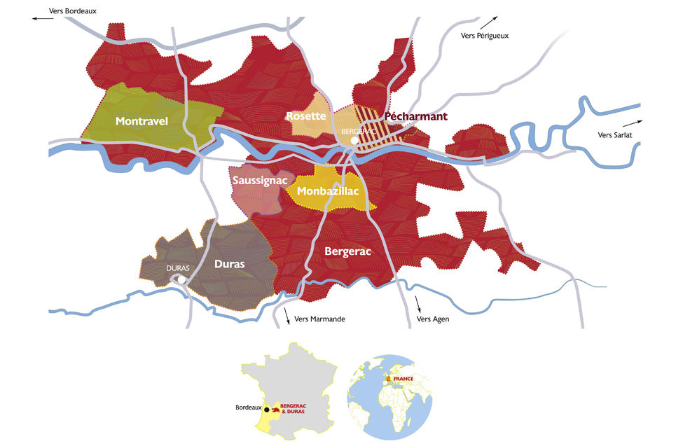 Aujourd’hui , la Dordogne, et en particulier la région de Bergerac, est richement dotée en vignobles et en appellations : Monbazillac, Pécharmant , Rosette, Montravel, Saussignac , Duras et bien sûr